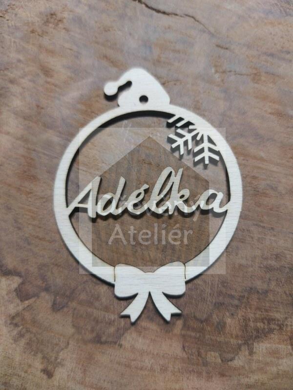 Dřevěná vánoční ozdoba se jménem či oslovením vyřezaná z překližky vhodná k oživení jakéhokoliv místa nebo k zavěšení na stromeček.