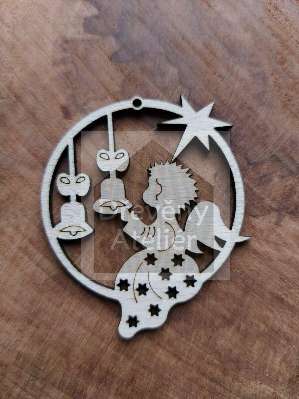 Dřevěná vánoční ozdoba vyřezaná z překližky vhodná k oživení jakéhokoliv místa nebo k zavěšení na stromeček.