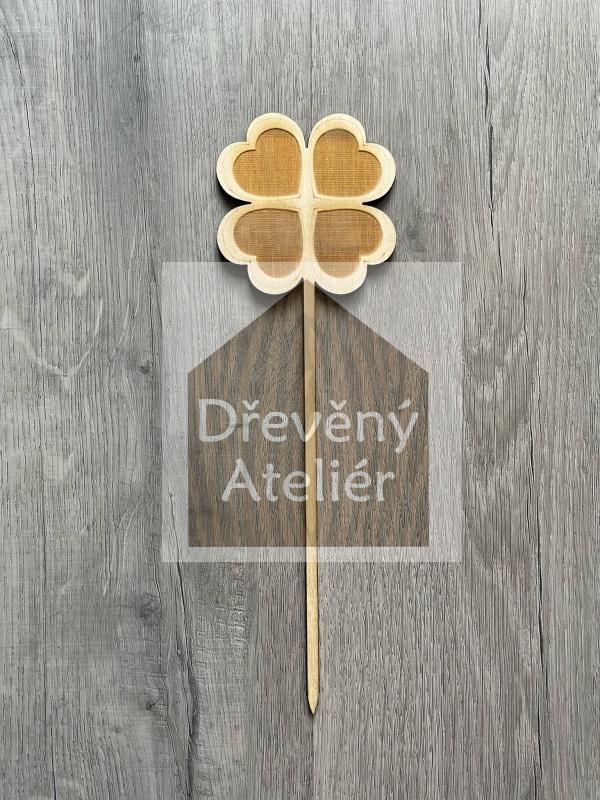 Dřevěná zapichovací ozdoba (Čtyřlístek)