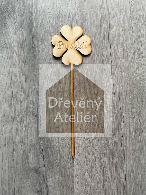Dřevěná zapichovací ozdoba (Čtyřlístek)
