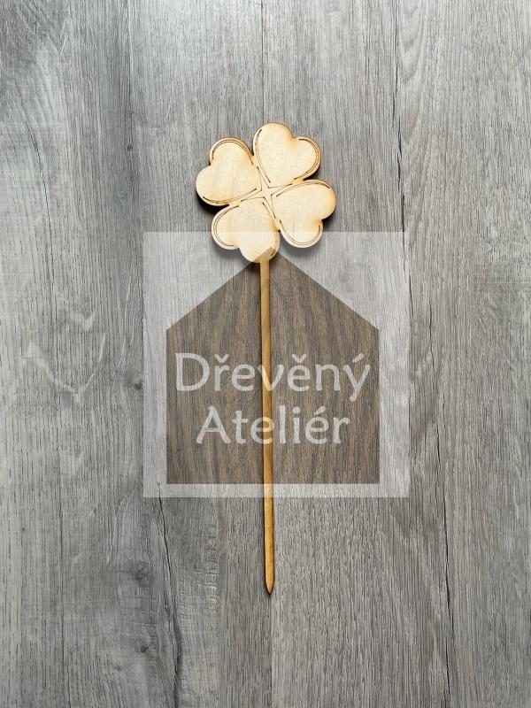 Dřevěná zapichovací ozdoba (Čtyřlístek)