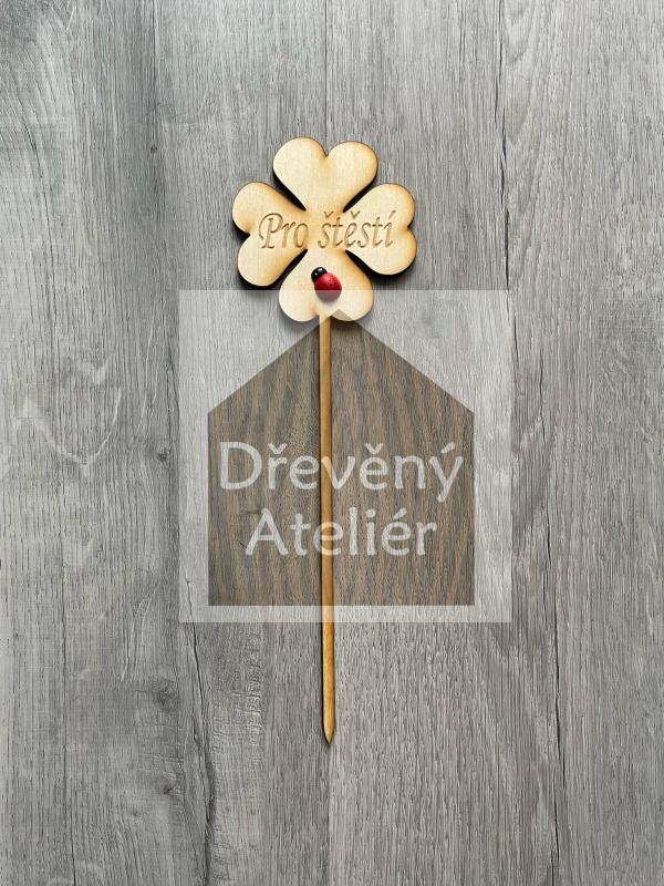 Dřevěná zapichovací ozdoba (Čtyřlístek)