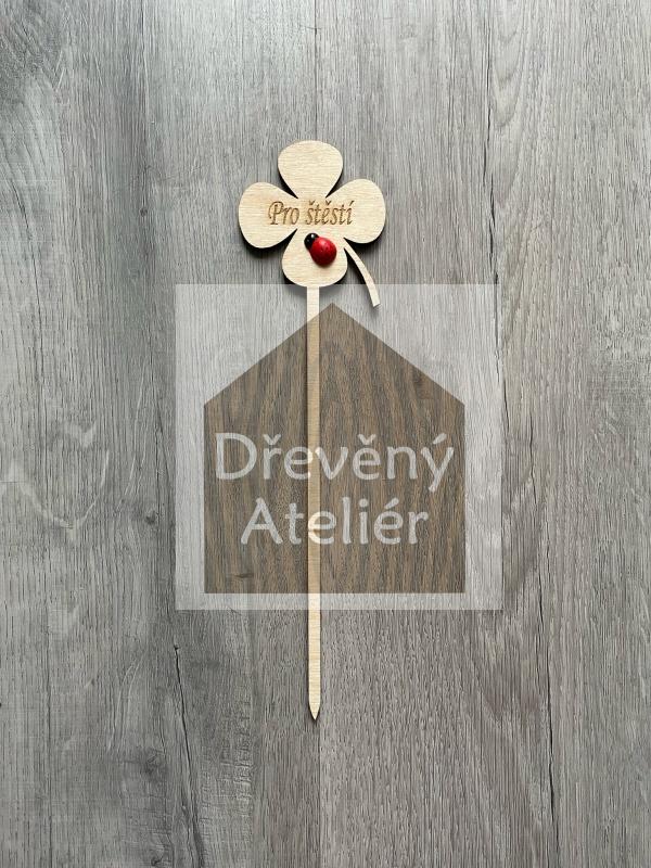 Dřevěná zapichovací ozdoba (Čtyřlístek)