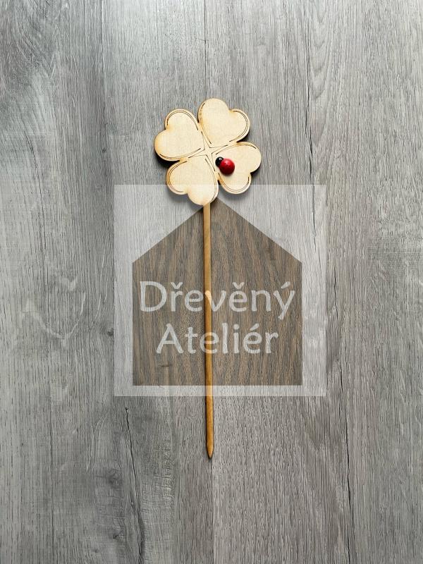 Dřevěná zapichovací ozdoba (Čtyřlístek)