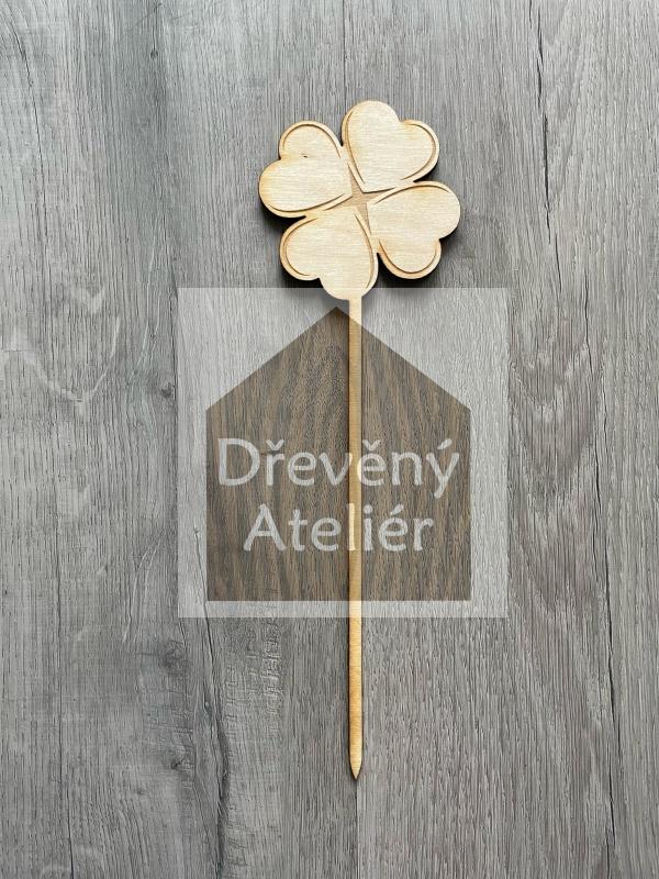 Dřevěná zapichovací ozdoba (Čtyřlístek)
