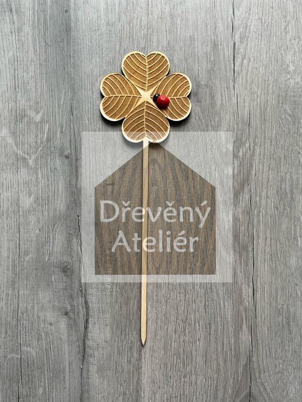 Dřevěná zapichovací ozdoba (Čtyřlístek)