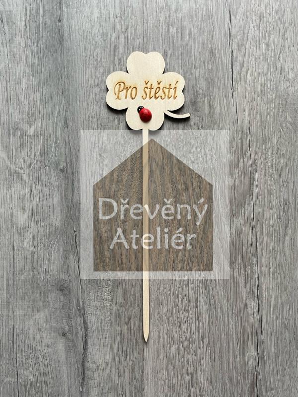 Dřevěná zapichovací ozdoba (Čtyřlístek)