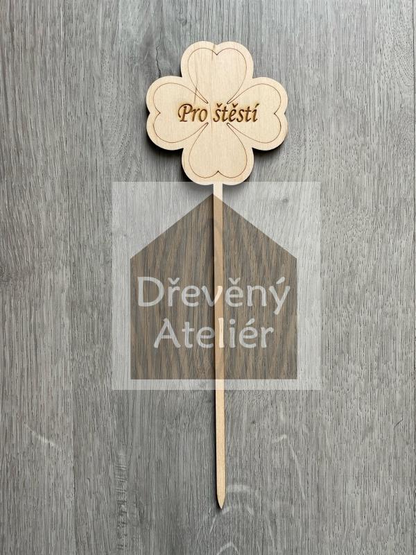 Dřevěná zapichovací ozdoba (Čtyřlístek)
