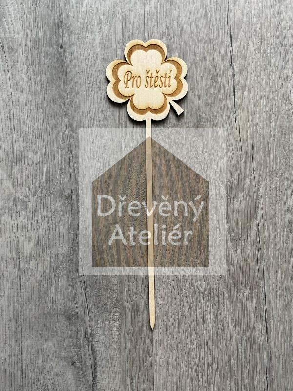 Dřevěná zapichovací ozdoba (Čtyřlístek)