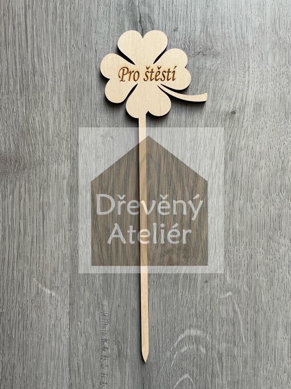 Dřevěná zapichovací ozdoba (Čtyřlístek)