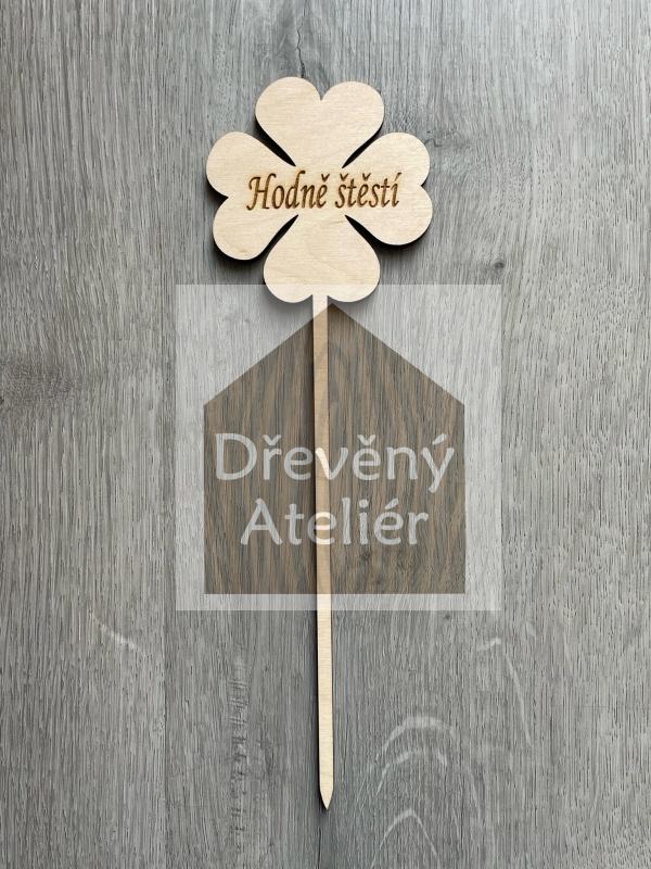 Dřevěná zapichovací ozdoba (Čtyřlístek)