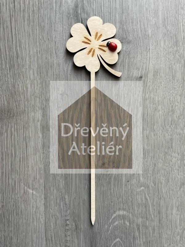 Dřevěná zapichovací ozdoba (Čtyřlístek)