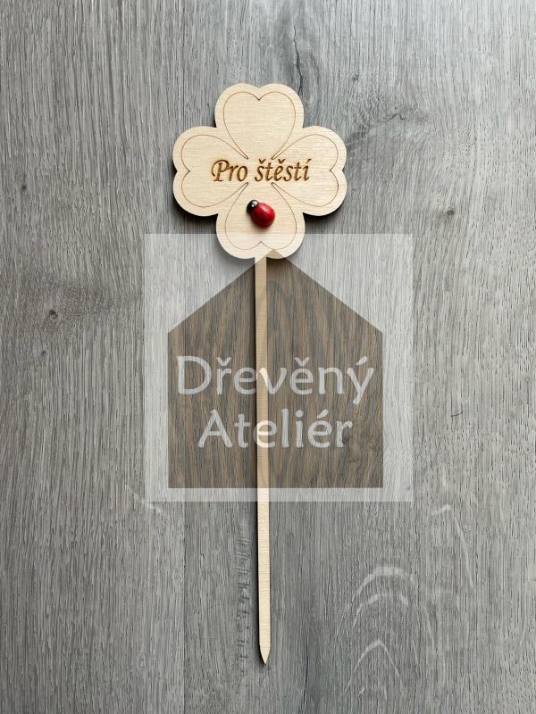 Dřevěná zapichovací ozdoba (Čtyřlístek)