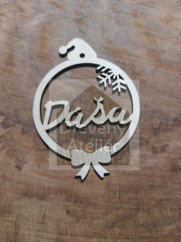 Dřevěná vánoční ozdoba se jménem či oslovením vyřezaná z překližky vhodná k oživení jakéhokoliv místa nebo k zavěšení na stromeček.