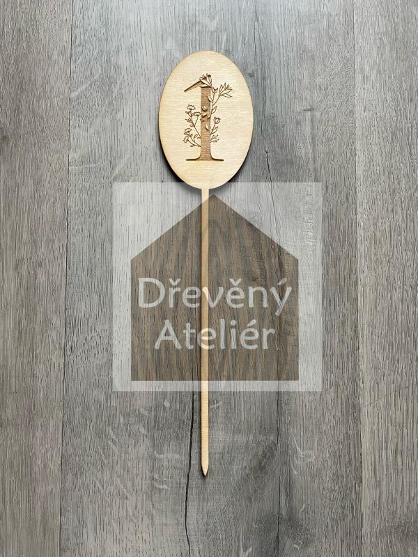 Dřevěná zapichovací ozdoba (gravura s květinou)