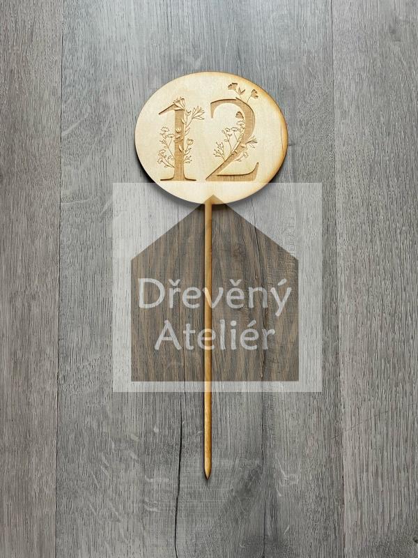 Dřevěná zapichovací ozdoba (gravura s květinou)