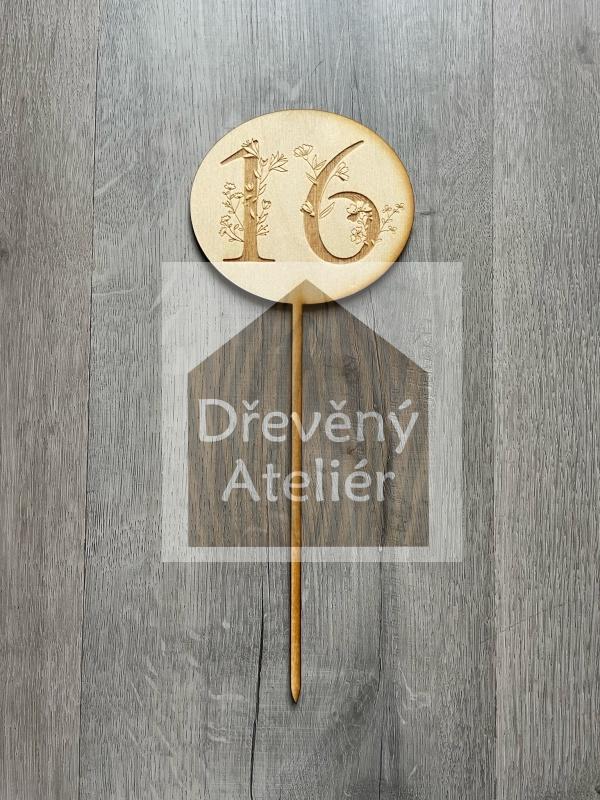 Dřevěná zapichovací ozdoba (gravura s květinou)