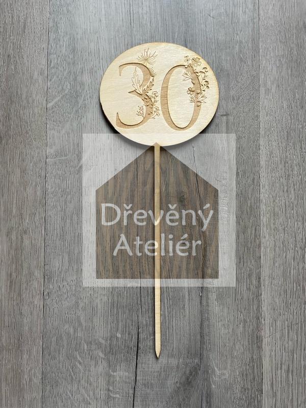 Dřevěná zapichovací ozdoba (gravura s květinou)