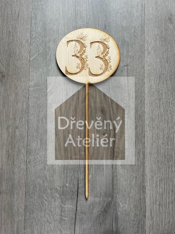 Dřevěná zapichovací ozdoba (gravura s květinou)