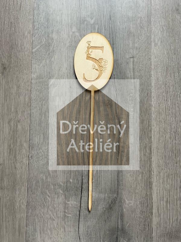 Dřevěná zapichovací ozdoba (gravura s květinou)