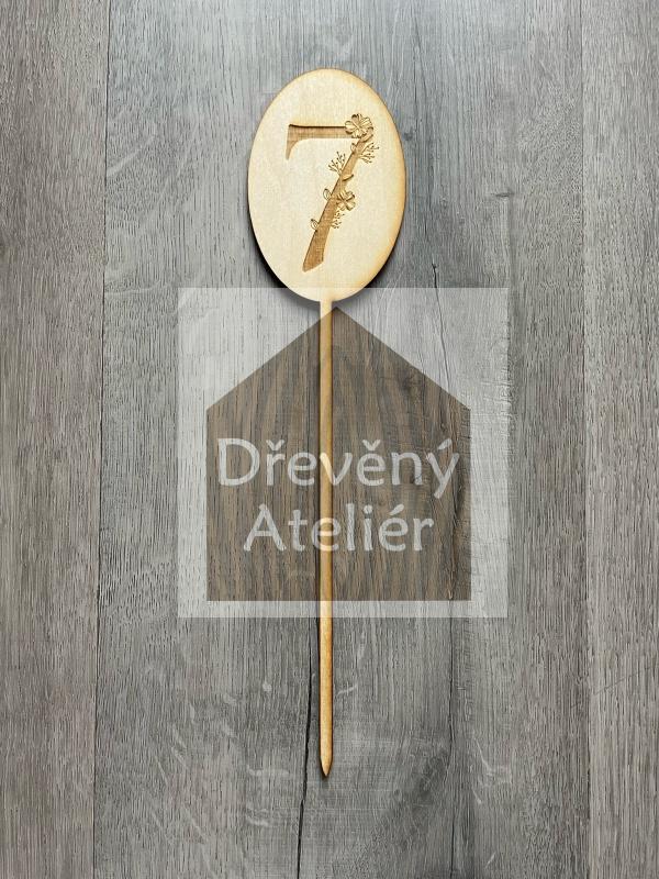 Dřevěná zapichovací ozdoba (gravura s květinou)