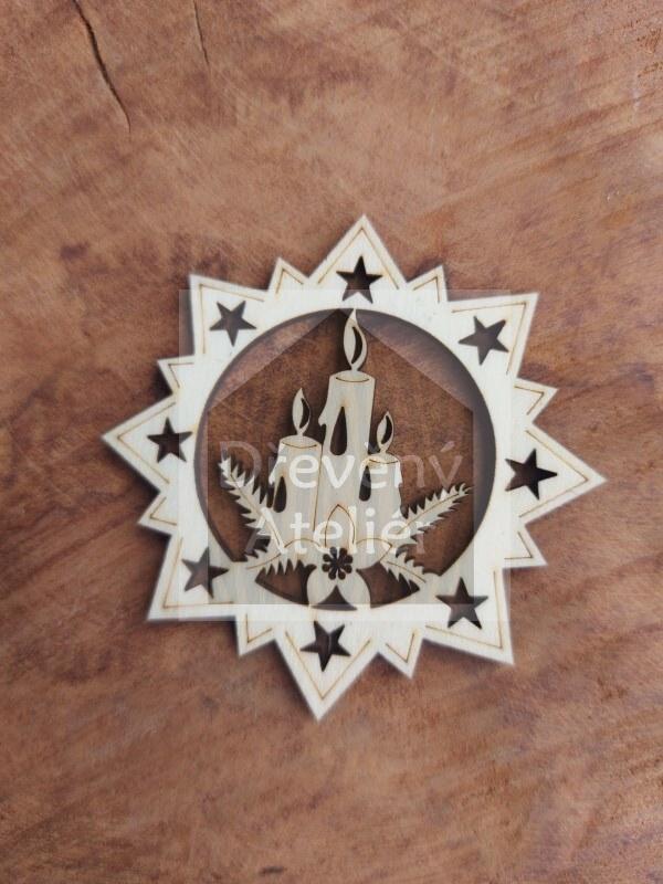 Dřevěná vánoční ozdoba vyřezaná z překližky vhodná k oživení jakéhokoliv místa nebo k zavěšení na stromeček. Cena je uvedena za 1ks.Minimálně k objednání 5 ks. U výrobku může vzniknout opálení z důvodu výřezu na laseru, suky a drobné nedokonalosti jsou běžnou součástí překližky.   celý popis