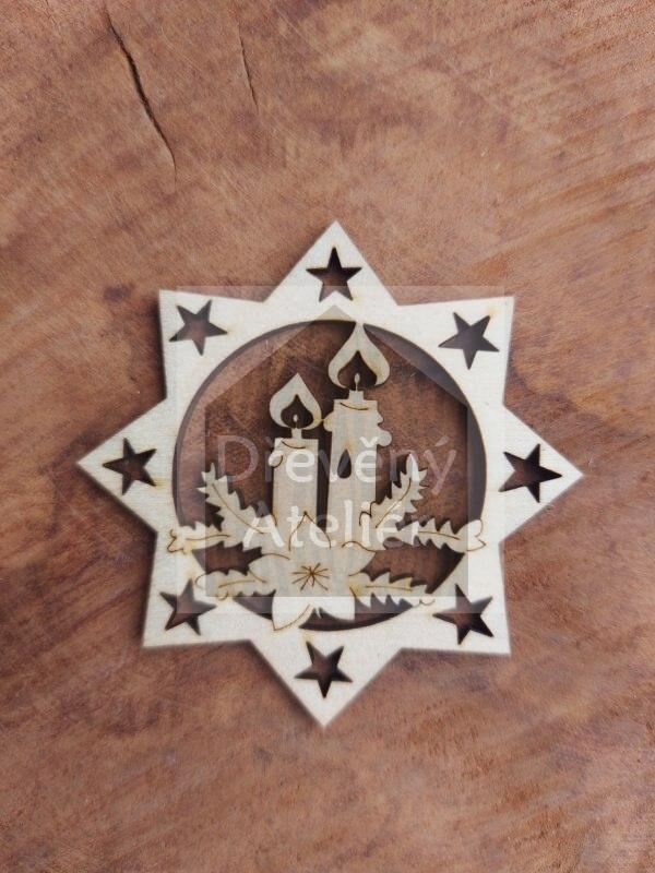 Dřevěná vánoční ozdoba vyřezaná z překližky vhodná k oživení jakéhokoliv místa nebo k zavěšení na stromeček. Cena je uvedena za 1ks.Minimálně k objednání 5 ks. U výrobku může vzniknout opálení z důvodu výřezu na laseru, suky a drobné nedokonalosti jsou běžnou součástí překližky.   celý popis
