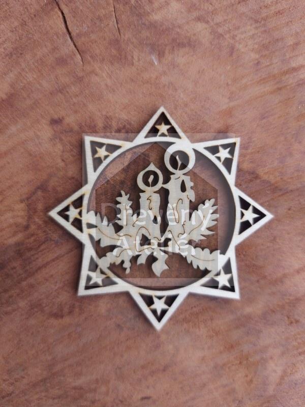 Dřevěná vánoční ozdoba vyřezaná z překližky vhodná k oživení jakéhokoliv místa nebo k zavěšení na stromeček. Cena je uvedena za 1ks.Minimálně k objednání 5 ks. U výrobku může vzniknout opálení z důvodu výřezu na laseru, suky a drobné nedokonalosti jsou běžnou součástí překližky.   celý popis