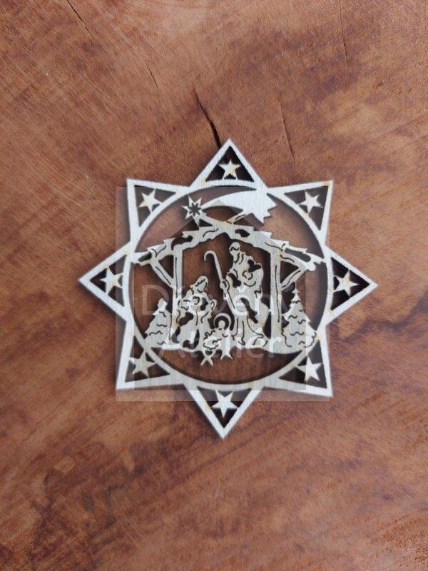 Dřevěná vánoční ozdoba vyřezaná z překližky vhodná k oživení jakéhokoliv místa nebo k zavěšení na stromeček.