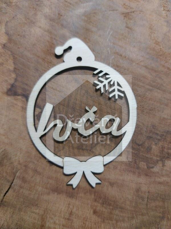 Dřevěná vánoční ozdoba se jménem či oslovením vyřezaná z překližky vhodná k oživení jakéhokoliv místa nebo k zavěšení na stromeček.