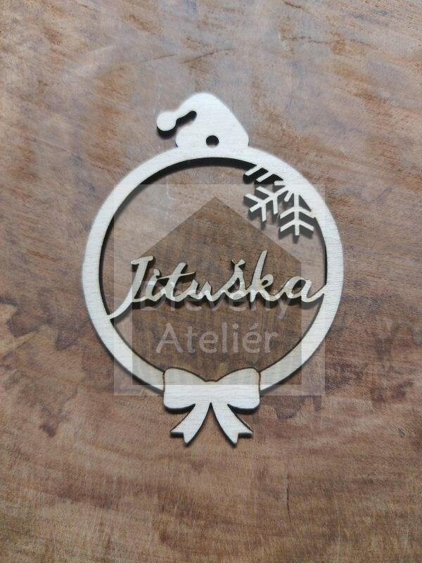 Dřevěná vánoční ozdoba se jménem či oslovením vyřezaná z překližky vhodná k oživení jakéhokoliv místa nebo k zavěšení na stromeček.