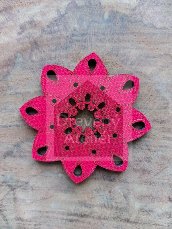 Červená látka je z obou stran. Kresba obrázku je pouze z jedné (přední) strany.