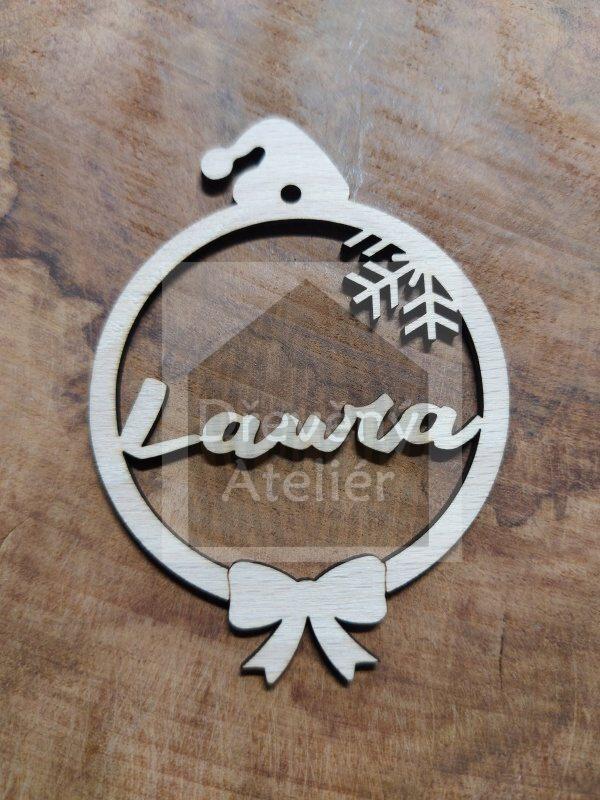 Dřevěná vánoční ozdoba se jménem či oslovením vyřezaná z překližky vhodná k oživení jakéhokoliv místa nebo k zavěšení na stromeček.