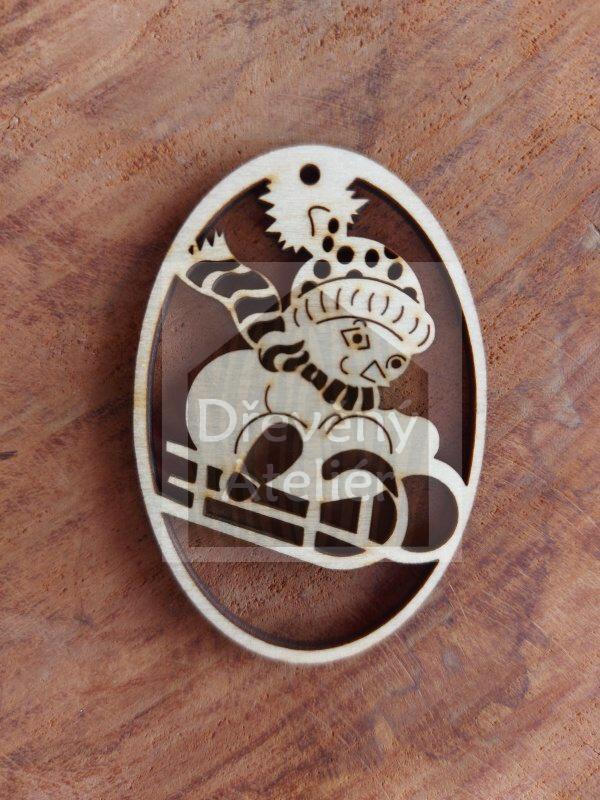Dřevěná vánoční ozdoba vyřezaná z překližky vhodná k oživení jakéhokoliv místa nebo k zavěšení na stromeček.