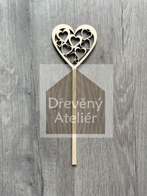 Ozdobný zápich ve tvaru srdce. Vhodný na svatební dorty, do květináče.