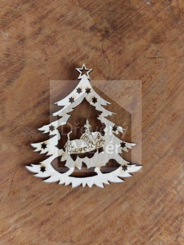 Dřevěná vánoční ozdoba vyřezaná z překližky vhodná k oživení jakéhokoliv místa nebo k zavěšení na stromeček.