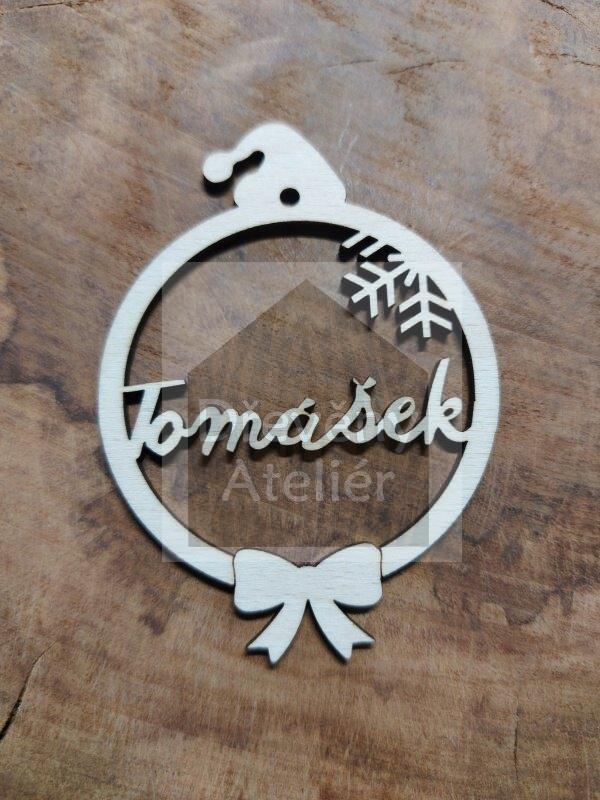 Dřevěná vánoční ozdoba se jménem či oslovením vyřezaná z překližky vhodná k oživení jakéhokoliv místa nebo k zavěšení na stromeček.