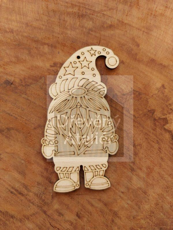 Dřevěná vánoční ozdoba vyřezaná z překližky vhodná k oživení jakéhokoliv místa nebo k zavěšení na stromeček.