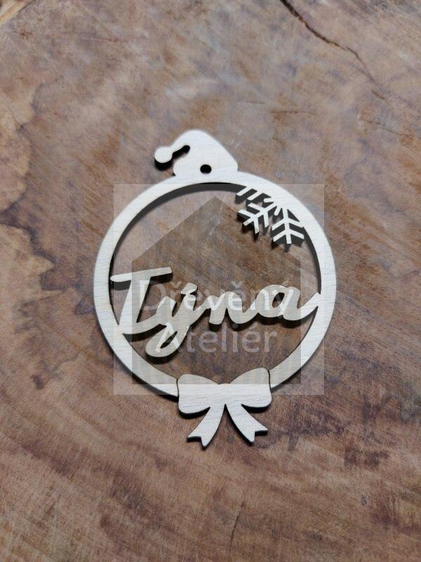 Dřevěná vánoční ozdoba se jménem či oslovením vyřezaná z překližky vhodná k oživení jakéhokoliv místa nebo k zavěšení na stromeček.