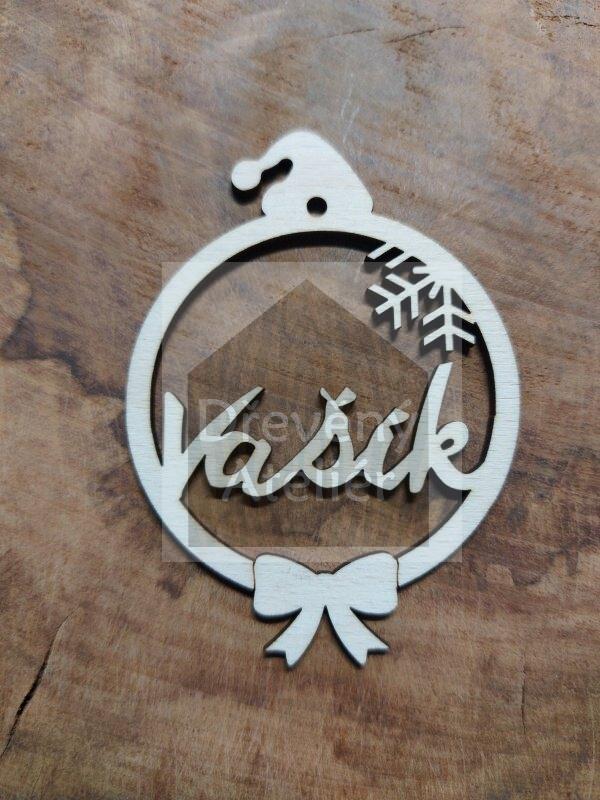 Dřevěná vánoční ozdoba se jménem či oslovením vyřezaná z překližky vhodná k oživení jakéhokoliv místa nebo k zavěšení na stromeček.