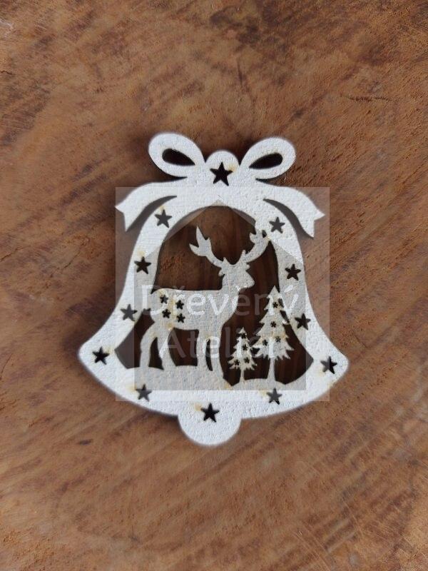 Bílá barva je z obou stran. Kresba obrázku je pouze z jedné (přední) strany. Dřevěná vánoční ozdoba vyřezaná z překližky vhodná k oživení jakéhokoliv místa nebo k zavěšení na stromeček. Cena je uvedena za 1ks. U výrobku může vzniknout opálení z důvodu výřezu na laseru, suky a drobné nedokonalosti js... celý popis